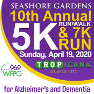 The 11th Annual Seashore Gardens 5K Run, Health Walk & 7k Run will take place Sunday, June 6, 2021 on the Boardwalk at Tropicana Casino & Resort in Atlantic City. The race starts at 9:00 AM, with day of registration starting at 7:15 AM. Net proceeds from this event will benefit the Alzheimer's/dementia services of Seashore Gardens Living Center, an independent nonprofit Home for the Aged.